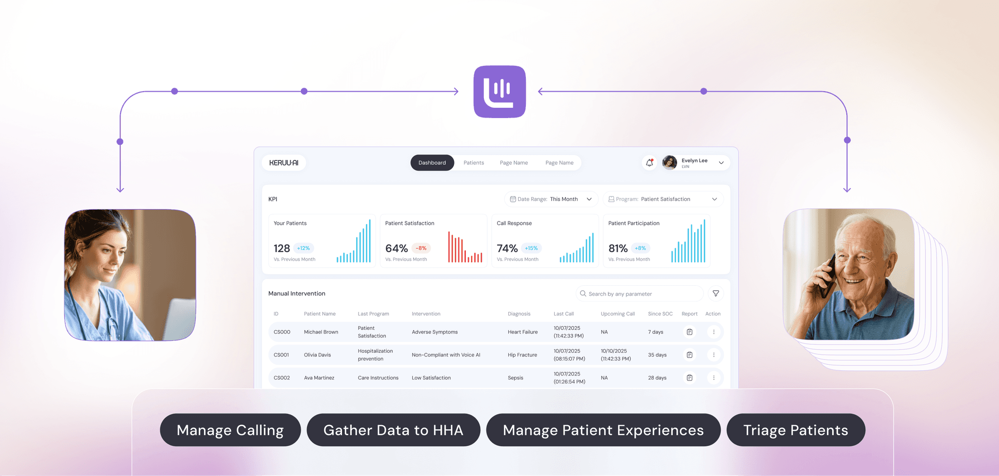 A Voice-First AI platform that completes patient calls on behalf of a home care agency for every stage of the patient lifecycle.